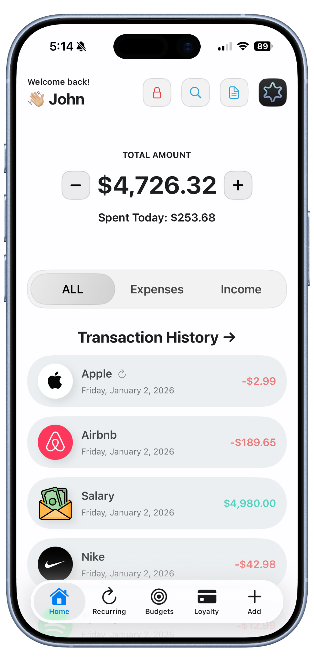 Logging transactions is a breeze with our premium UI. Plus, our AI automatically recommends logos for your transactions, making them easy to identify.